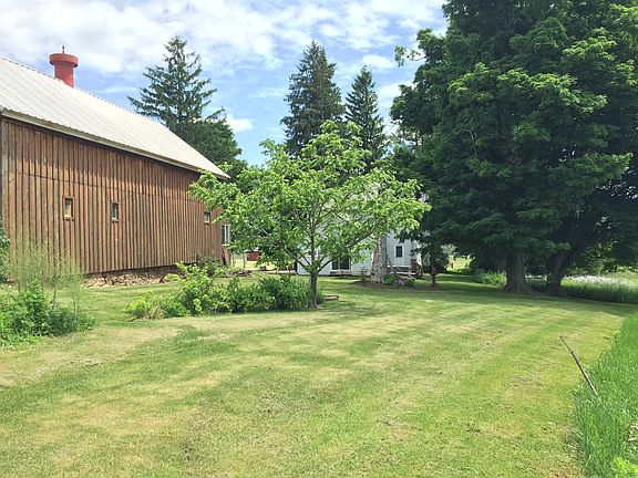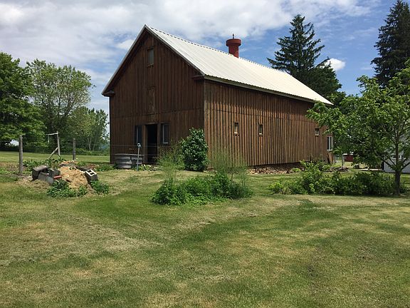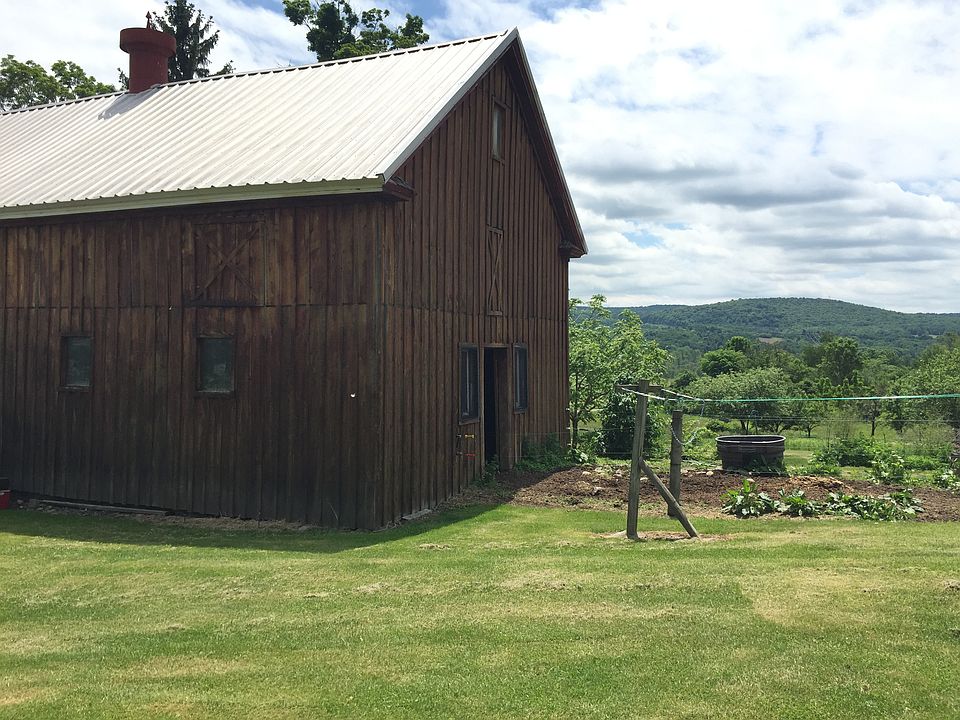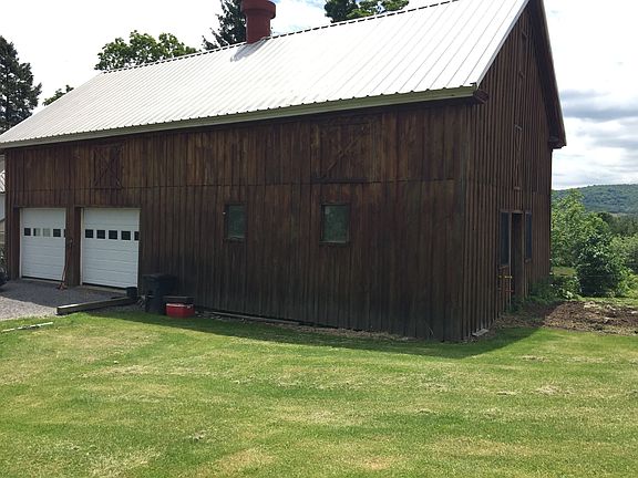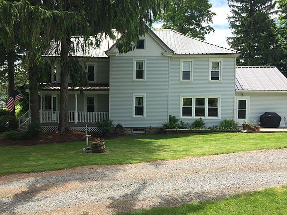 Farmhouse, Country, 2 Barns, Pond, Hunting Land, Orchard all this and much more! This expansive home features over 2,600 sq. ft. with 6 bedrooms, including 1 on the first floor. A beautiful country kitchen overlooks yard, & horse pasture. Fully renovated exterior, low maintenance vinyl siding, new metal roof & composite front porch waiting for your rocking chairs. The original barn has a 2 car garage & horse stalls w/hay loft. Orchard filled w/fruit trees & berry bushes, acres of cleared land, run-in shed & spring fed pond are bordered by wooded lots with trails & complete w/hunting cabin!