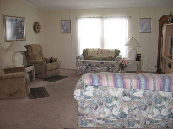 This turnkey home is located in beautiful Four Lakes, a 55+ community with homes on lot leased land.........Monthly lot rent of $489 allows you and your guest to use the amenities of the community........... This beauty features two bedrooms, two baths, split floor plan, dining room and an eat-in kitchen. You'll find it located on a lovely landscaped corner lot........... The large kitchen has plenty of cabinets and counter space, bottom freezer refrigerator, smooth top stove, dishwasher, built-in dishwasher and microwave........... The large master bedroom has a walk-in closet with mirrored doors and the master bath features his and her sinks, walk-in shower and lots of storage for linens........... The 13-1/2' X 9-1/2' Florida room has tiled floors, vinyl windows and heat and air,,,great place to relax with your morning coffee or a nice glass of wine,,,it's five o'clock somewhere!........... The long deco drive leads to an oversized golf cart garage, and yes, the golf cart is included (with new batteries)!........... Remember this home is move-in ready with everything you will need. You don't want to miss out on this one!.......... Four Lakes Golf Club is an affordable, award-winning retirement community. It carries on that tradition with only the finest homes, amenities and service that is second to none. Anyone looking for an active retirement community in the central Florida area need look no further. .......... Amenities include: 22,000 sq. ft. full service clubhouse; Four beautiful lakes with marina; Large heated swimming pool; Master whirlpool spa; 18 hole regulation golf course; Billiard and game room; Library & surround sound theater; 24 hour gated security; Exercise room with sauna; Fully equipped crafts room w/ kilns; Putting greens and pro-shop; and Access control gate with attendant. Pets under 40 lbs. allowed...........