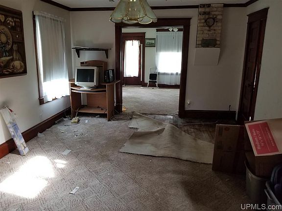 Rare find! 4 bedroom, 1 1/2 bath home located on 40 acres in Ironwood! Large kitchen, dining room and living room, with main level bedroom. 3 good sized bedrooms and full bath upstairs. Large 3+car detached garage. Plenty of apple trees and large yard. Property has trails and is well wooded. Needs some TLC. Priced below assessed value!