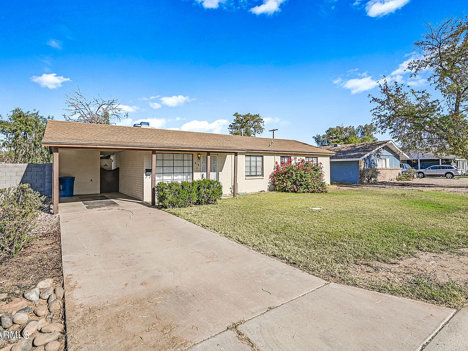 Presenting a move-in ready gem nestled in a serene mid-century Tempe neighborhood, only a mile from ASU, boasting convenience and tranquility. This well loved and maintained home exudes timeless charm and offers a prime location, just three houses away from a park featuring amenities including a dog park and basketball courts. This well-appointed home comprises four bedrooms with ample closet space, plus a versatile bonus room. A seamless flow defines the interior, encompassing a formal living room, a spacious kitchen perfect for the addition of a free standing island, and an inviting dining area. The striking red brick fireplace stands as an exquisite centerpiece, commanding attention in both the welcoming entrance and the cozy family and dining space. Amenities abound, including... two linen closets, a mature yard adorned with tangelo and orange trees yielding delightful fruit, and the convenience of an RV gate. Noteworthy updates include a 2015 installation of a new TRANE air conditioning system, accompanied by revamped duct work for enhanced efficiency. The attic boasts insulation comprising a double layer of blown insulation and batting, ensuring optimal energy conservation. Additionally, this home includes a refrigerator, washer, and dryer. The lawn mower and edger are available for sale if desired. Don't miss out on this great opportunity to own this wonderful home in a much sought-after Tempe location!