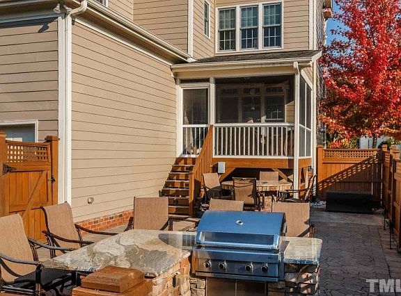 Fall in love this great home in one of the best & quiet sections of Amberly built by Homescape - one of the quality builders compared to some of the new ones at Amberly. Great patio for entertaining. Large granite tables/tops with firepit, built in gas grill and multiple seating/mingling spots. Screened porch, custom built ins in family room, 4 BR's, 4 1/2 baths. Real hardwood floors - no fake stuff here. Wrap around porch. Certified Pre owned and fully inspected already. Onsite pool, gym/fitness center