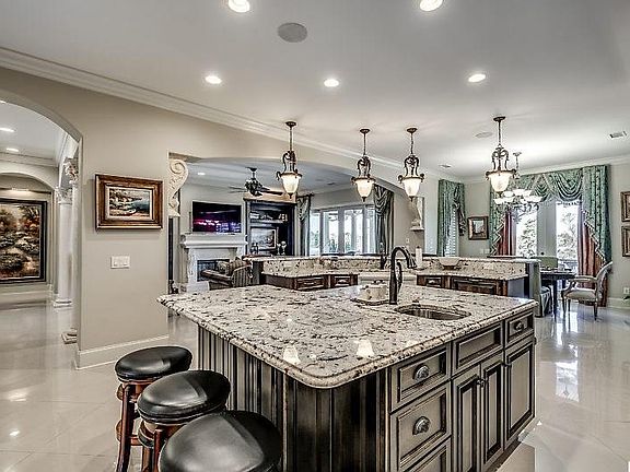 This custom built 5 bedroom 6 and 1/2 bath home leaves no box unchecked when it comes to luxury living on the Intracoastal Waterway. It offers two master suites, three fireplaces (one pool side for entertaining or romantic evenings), two laundry rooms and air tubs in 5 of the bathrooms. Custom cabinetry and closets throughout the home. Custom window treatments and wooden blinds accentuate the attention to detail given during the designing of this magnificent home. The gourmet kitchen offers and entertainment area that spills out onto the spacious rear porch overlooking the pool and the waterway. The kitchen features a six burner gas stove, pot filler, 3 ovens, kitchen aide mixer stand lift and enough character to make the best chef glow. If offers a Miele dishwasher, over and under counter lighting along with central vac. making clean up a breeze. The chandelier at the entrance of the home has power lift for ease of cleaning. Having three tank-less water heaters throughout the home will keep hot water flowing. The views are breathtaking as you overlook the infinity pool with hot tub that leads to your private dock with a boat lift with 4 jet ski lifts. While outdoors by the pool and enjoying the waterway, the summer kitchen will come in handy for cookouts and parties that will be sure to please. A full bath is conveniently located adjacent to the pool and summer kitchen also. On the pool level you also have a billiards/ game room with kitchen and bar. A custom theater room with remote projection screen/lighting and seating for all of the friends and family complete with surround sound. For your convenience an elevator will move you from the ground level to others with ease. The garage floors are professionally coated and sealed and offer abundant space for autos or toys. There are too many other features to mention here and you really must see it for yourself. Call us today to schedule your private viewing. Make this your forever home....