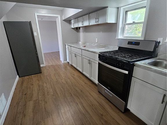 Newer kitchen cabinets and stainless steel appliances