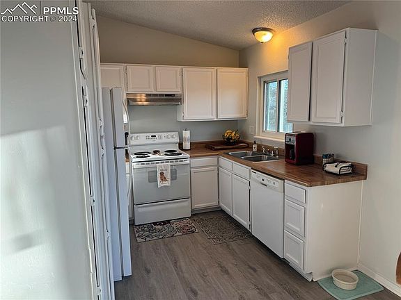 Welcome to this lovely home ideally located in the quiet Kambridge Point at Briargate neighborhood. This exceptional property offers 3 bedrooms, 2 baths, a 2-car garage, and spacious living areas. The recently updated interior boasts fresh paint, new flooring, and a beautifully renovated master bath, giving the home a modern and stylish feel. The vaulted ceilings and wood-burning fireplace in the family room create a warm and inviting atmosphere, perfect for relaxing or entertaining. The kitchen features matching appliances and you'll never have to worry about kitchen storage! The adjacent dining area opens onto the spacious deck, offering the perfect spot for al fresco dining or enjoying the stunning mountain views with a glass of wine in the evenings. Venture upstairs and you'll discover the master suite featuring a large closet and attached en-suite bath. The two additional bedrooms are spacious and bright, and the nearby full bath ensures everyone's comfort. The expansive, fenced backyard is a private oasis, featuring mature trees and bushes for added privacy. The recently painted deck is the perfect spot for summer barbecues or quiet evenings under the stars. You can rest easy knowing that the roof and side gates were installed last September and the furnace was checked and serviced in the last month. Located in the highly coveted D-20 school district, this home is conveniently located within walking distance of Frontier Elementary School. Close to shopping centers, top-rated schools, parks, shopping, and dining... Don't miss your chance to make this exceptional home yours!