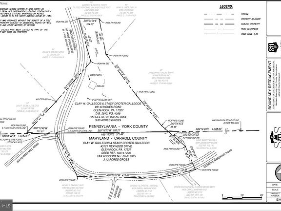 Homesteader Alert! Unique -6.92 Acre Property in Glen Rock, PA on the PA/MD Line – South Western School District! Discover 6.92 acres of picturesque land in the South Western School District, offering a blend of mature trees, fruit trees, berry bushes, babbling creeks, abundant wildlife, and open pasture area. This serene setting is perfect for nature lovers, homesteaders, or those seeking a peaceful retreat. A rustic A-frame cabin in disrepair sits on the property, ready for a complete rebuild or removal to make way for your dream home. With well and septic already on-site, the groundwork is in place for your vision to come to life. Proposed building plan previously approved in 2019 is attached in documents. What makes this property truly one-of-a-kind is its location on the historic Mason-Dixon Line, spanning 3.80 acres in Pennsylvania and 3.12 acres in Maryland. Adding to its historical charm, a Mason-Dixon Crownstone, a rare and significant landmark, is located on the land. Both parcels convey with the sale. See survey and building plan in the listing photos and schedule your visit today to experience this unique opportunity! No Entry into the cabin is permitted! Property being sold as is.