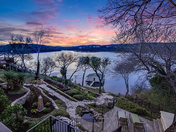 Private lakefront estate in Sandy Shores in Volente, TX! Located on the shores of beautiful Lake Travis with panoramic lake and hill country views from every room. Home remodeled in 2004 with architectural and custom features throughout, this home was designed with the ease of daily living and entertaining in mind. All cabinets, trim, and doors were site built and hand crafted of the finest pecan, the stone flooring was also hand cut onsite. The master bedroom is located on the first floor and features...