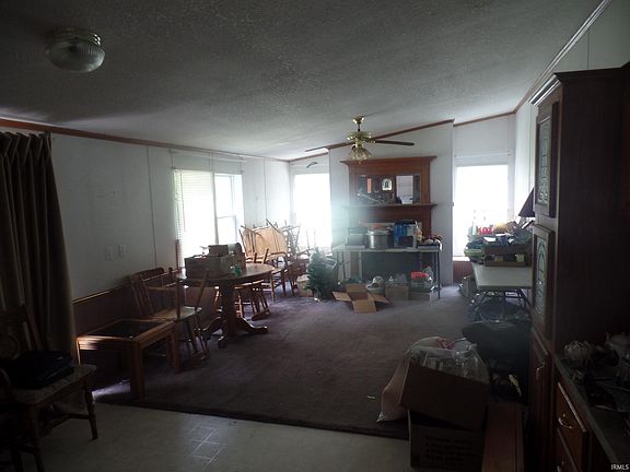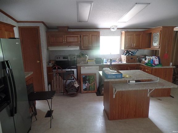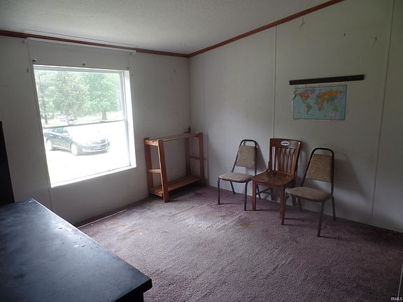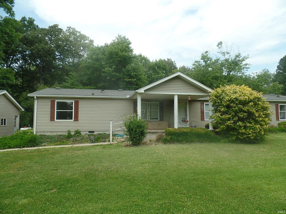 Sitting on 6.5 acres of quiet solitude. Enter into a large living area which an open floor plan for the dining/kitchen and family room. Kitchen has an island and some stain-less steel appliances. Just off the kitchen is the laundry room and a half bath. Family room has a fireplace and built-in desk. Patio doors lead to a back open deck. The primary suite is on this end of the house and contains a full bath which has a large garden tub, dual sinks and a separate room with a stand-up shower. Proceed down the hallway to 3 more nice sized bedrooms and another full bath. 2-car detached garage, some landscaping and a covered front porch. Plenty of room to roam.