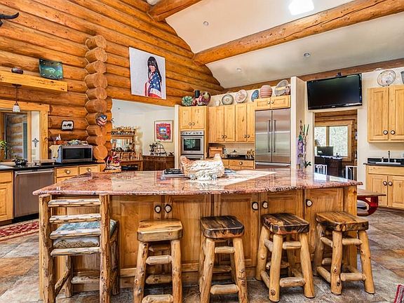 Located at the base of Greenhorn Mountain, you will find beauty and serenity that most only dream of! This stunning one-of-a-kind home boasts luxury and craftsmanship from the moment you arrive. With 9146 sqft this British Canadian Log Home offers 7 bedrooms, 7 bathrooms, stunning hickory cabinets, granite countertops, a breakfast nook, sunken living room, family room, sauna, sand volleyball court, attached 3 car garage, and so much more! The elegance and rustic charm adorn every inch of this magnificent home. Outside entertaining is a must as you enjoy one of the many outside patios or decks. Charming guest house tucked away on the east side of the property offers comfortable living space with updated appliances, hardwood floors, and new carpet.