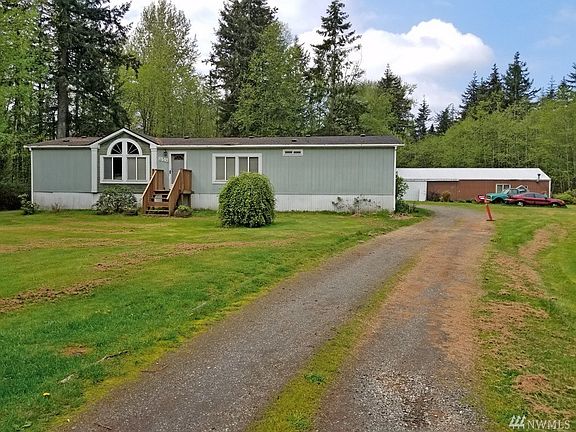 The full package-Good size Manufactured home, Big Shop & 4.88 acres. very open floor plan featuring: Large kitchen w/island and bar, Great room, dining room, skylights & spacious master bath. 2bdms, 1 bath at one end of home & master on opposite. Big deck, flat land w/nice approx. 24x60 shop lots of loft space, slab floor & approx. 12' slider. No hassling w/well, this has affordable community water.