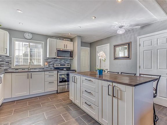 Lot's of updates in this gorgeous townhome including an open concept main floor which has been beautifully renovated with a new modern kitchen which features an over sized kitchen island with ample storage, custom gliding pantry shelves, and soft close drawers. You will appreciate the pot lighting and new flooring throughout the entire main floor. The large living room has a wide slider that allows for loads of natural light and looks out to a fully fenced patio area. The main floor also offers a newly renovated 2 piece washroom. Upstairs includes 3 bedrooms and full bathroom. Enjoy a fully finished basement that includes a second living room, laundry and storage area. This fantastic townhome is in a prime location and just steps away from schools, shopping, bus routes, and the new Costco! Affordable living in one of Niagara Falls most desired communities! One parking spot is included, with an option to rent a second spot for $20/month. Lots of visitor parking available. This move in ready unit is a must see!