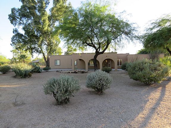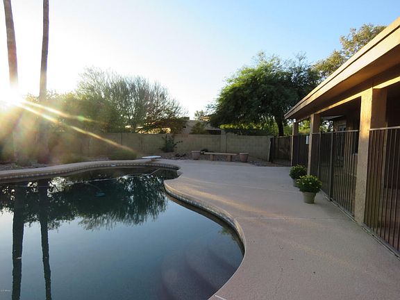 Highly desirable community of Patterson Ranch. Close to shopping, dining and all of Scottsdale's amenities and tucked away in a quiet community with no HOA. This beautiful, charming home has it all and with almost an acre lot, the possibilities are endless. Your dreams are possible... Add a sport court, horses, an extra garage... This spacious home boasts a great open floor plan, featuring vaulted ceilings, beautiful brick fireplace and plenty of updates. A guest bed and bath are split from the two large bedrooms and master suite. Four ways to access the resort like backyard with a fenced diving pool and extended, covered patio. A separate living room or office are available for whatever you may desire. Updated kitchens and baths. Gorgeous tile and wood floors.