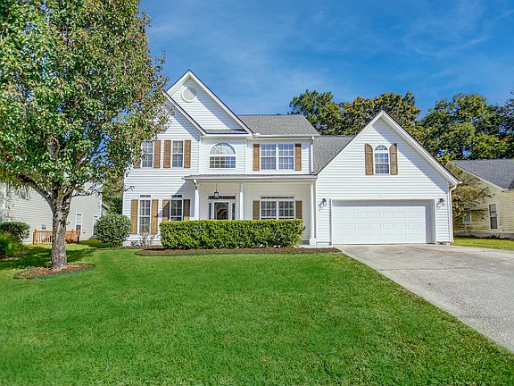 What an incredible home! Welcome to your new home in the charming Indigo Fields community in North Charleston. This delightful residence offers not just a super convenient location, but also a welcoming exterior exuding a pleasant curb appeal that will draw you in from the moment you arrive.Step into the bright and airy interior, where the open floor plan boasts exquisite flooring, abundant natural light, elegant crown molding, and charming wainscoting, providing a sense of sophistication and comfort. As you enter the two-story foyer, you'll find the formal living room to your left and the formal dining room to your right, perfect for hosting and entertaining guests.The family room, overlooking the lush backyard, provides a cozy ambiance with a fireplace, complemented byan abundance of windows that invite the outdoors in. This space seamlessly flows into the eat-in area and kitchen, ideal for effortless daily living. The kitchen is a chef's dream, featuring pristine white cabinets, stainless steel appliances, a shiplap backsplash, sleek granite countertops, soft-close drawers, and a pantry for all your storage needs. There is also a lovely powder room on the main level. Ascending to the upper level, the fabulous owner's suite awaits, basking in natural light beneath a double tray ceiling, offering a haven of relaxation and tranquility. The en suite bath is a luxurious retreat, boasting a dual sink vanity, a deep soaking tub, a step-in shower, and a custom walk-in closet, providing both style and functionality. The second floor also hosts two additional bedrooms, a flexible third bedroom that could serve as a home office or flex space, and a well-appointed bathroom. Step outside onto the screened porch, an idyllic spot for enjoying the fresh air and serene views of the expansive fenced-in backyard. Embrace the outdoors with an above-ground pool, framed by mature trees that offer shade and privacy, creating your own personal oasis. There is also a huge concrete pad in backyard just off of the screened in porch, perfect for grilling, relaxing, and entertaining. In addition to the attached two car garage, there is also a detached two-car garage. This space is ideal for vehicles, storage, a workshop, or whatever suits your needs. This space has its own 100amp sub panel, lighting, and electrical outlets. For your convenience and peace of mind, this home is equipped with Ring security and cameras, a Nest thermostat, and a new garage door opener. Situated within the DD2 school district, this property truly has it all. Don't miss the opportunity to make this your new forever home!