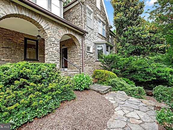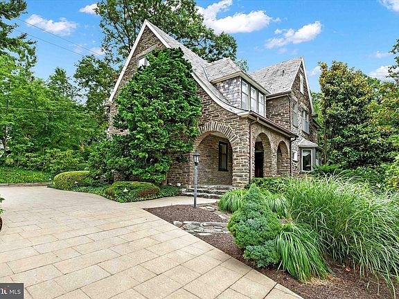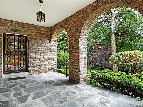 Welcome to Holmecrest, a historic gem nestled on a secluded 1-acre parcel in Elkins Park. Originally commissioned by local developer Joshua A. Holmes in 1926 as his personal residence, this distinguished stone manor has a rich history spanning 98 years and has been cherished by only five owners. Notably, it was once home to Rona Brunswick (nee Bronfman), daughter of a Seagrams founder, fostering ties with the Kennedy family during Prohibition. ***The landscaped circular drive leads to the front porch with the main entrance, as well as to a drive through portico to the detached two car garage. An electric station is present for a Tesla. Holmecrest offers timeless elegance and modern amenities in a coveted parklike setting. The drive is lined with peonies on one side and hydrangeas on the other. This is more than a home; it's a piece of history awaiting its next steward. ***The main entrance leads to a gracious foyer where living spaces radiate elegantly. A cozy paneled library with a wet bar faces southwest, while the expansive living room boasts exquisite trim moldings, a bay window, and a gas fireplace with a detailed Georgian mantel. Beautiful glass French doors lead to the living room and dining room. The formal dining room, bright and spacious, features a crystal chandelier and bay window, offering serene views of the expansive rear yard. The updated kitchen is a chef's delight with marble counters, Sub-Zero fridge, new stove & dishwasher, dual sinks on a peninsula & island, and a breakfast area. New sliders lead to the rear deck where you can enjoy beautiful views while dining outdoors. ***As you ascend the stairs to the second floor there is a stunning stained glass window on the landing. The second floor offers a primary suite which includes a sitting area and an en-suite bath with a luxurious glass shower for two, dual sinks and new heated tile floor. Additional bedrooms offer private en-suite or adjacent baths, with convenient laundry facilities on the second floor. All five bedrooms in the home are spacious and have good closet space. A back staircase from this floor leads to the kitchen area. ***The third floor accommodates two more bedrooms and a full bath, complemented by ample storage closets. The finished basement hosts a family room with a walkout slider to a pergola-covered patio, a large office area, utility area and ample storage along with a powder room. *** This home has been updated for comfort throughout. New high velocity A/C for first floor and basement. New Air Handler on the third floor which cools 2nd & 3rd floors. Additional mini splits in kitchen and 3rd floors if needed. Home has had the electrical system updated including the two car detached garage and its loft. This area is the perfect area for future additional living space; home office, art studio, man cave or whatever you may need. *** Too many upgrades to list here but interested buyers can request Home Improvement List from their agent. *** This home is conveniently located just three blocks from Elkins Park train station and CreekSide market, shops, restaurants and more. Neighborhood parks and trails are within walking distance. Home is close to 611, 309 & turnpike for easy travel.