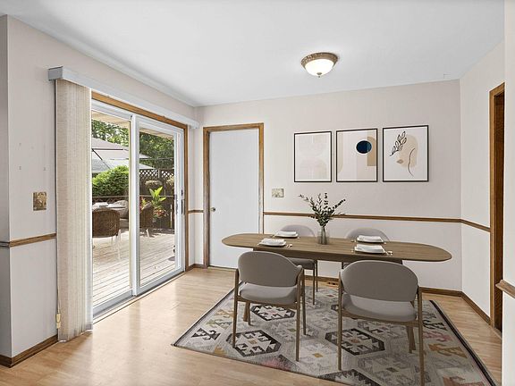 This fabulous Bloomington rambler has been lovingly cared for over 60+ years. Main floor addition allows for great informal dining room space, opened-up kitchen, and breakfast bar you don’t typically see in homes of this era. Three bedrooms on main level, one of which is a very versatile space and could also be used as a den or home office. Second entry area next to the main entry is perfect space for a mud room. Lower level family room offers game room or television space and comes with a bar and bar stools. Fourth bedroom, second bathroom and large storage room complete the lower level. Huge deck off the informal dining room overlooks an expansive, flat backyard complete with storage shed. Full roof replacement in October 2024.