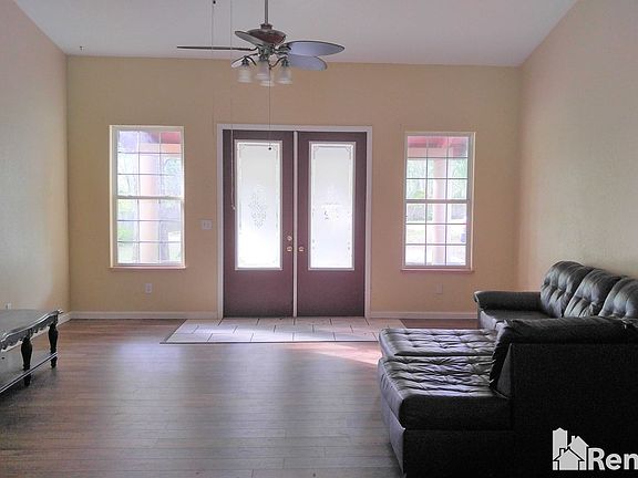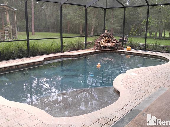 This incredible unique POOL home has 3 bedrooms, 2 bathrooms, and a detached 1 car garage. This private property has its own private drive that leads to 2.5 acres and is completely fenced in! It is minutes away from local shopping and dining. The front entry leads to the living room, dining room, and kitchen with electric stove/oven and fridge. The kitchen also leads out onto the patio area that is perfect for BBQ's! Off the living room, there is a den/office with separate entrance that could be used as a 4th bedroom. Downstairs you will find a sitting area outside the 2 spare bedrooms. The bedroom to the right has a separate entrance. Upstairs is the master bedroom with open bathroom. Also located upstairs is an extra room for an office, sitting area, or nursery. This room also has a large walk in closet. Pets are case by case basis. Please ask about breed restrictions. First and security to move in. Security is equal to the rent. $60 Application fee per adult. $75 annual Processing fee once application is approved. $300 pet fee per approved pet.
