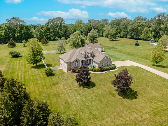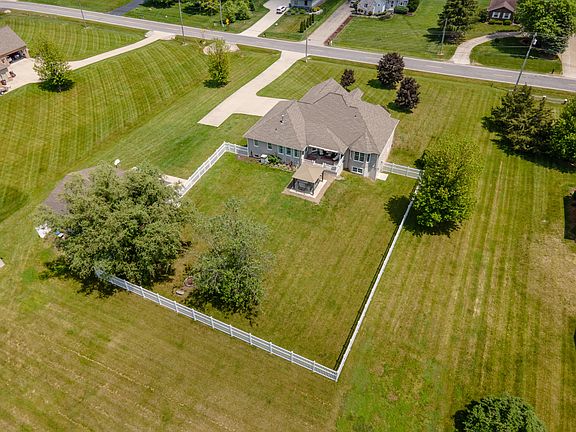 3.66 ACRES, CUSTOM-BUILT RANCH DREAM HOME! This 2,700+ square foot home is situated on almost 4 acres with the most breathtaking views! Tall Ceilings, Natural Hardwood Flooring, Central Vacuum System and Anderson Vinyl Windows throughout the entire home! Chefs Kitchen built for entertaining, showcases the massive island, custom cabinetry, granite countertops, Stainless-Steel Appliances, Jenn-Air Gas Stove, NEW Built-in Oven (2023) & Walk-in Pantry! The Separate dining area is adorned with columns and tray ceiling-a true work of art! Gas Fireplace opens to the large family room with attached bonus room featuring glass pocket doors for added space! Luxurious, Main Floor-Master Suite with tray ceiling has private access to covered porch and large master bathroom with jetted soaking tub, stand-up shower and His & Hers WIC! First Floor Laundry Room boasts NEW GE Front loading Washer/Dryer (2021) & large storage closet! Downstairs you'll find the Massive, Walkout basement with glass French doors, finished Full Bathroom with glass shower & double vanity, TONS of storage rooms including large food pantry, NEW Furnace (2022) & NEW HWT (2021). Outside you'll find the renovated covered porch with tiled flooring, exterior fan & recessed lighting. Covered Gazebo on concrete slab & NEW 6ft Vinyl Privacy Fence (2022). In addition to the 2.5 attached garage, the massive (40x36) HEATED pole barn with electricity has (3) garage bays and additional attic storage! This home is a TRUE masterpiece!