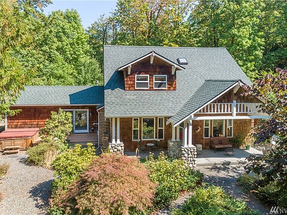 Serenity Attained! This Craftsman on 5 Ac will be your dream home! Main floor master (MBa has heated floors), 2 bedrooms & den up. The formal LR features oak floors, wainscoting, river rock pellet FP, a full wall of built-ins & beautiful lighting. The open Kitch has granite counters (as do the bathrooms), white Shaker cabinets, butler's pantry & subzero frig. Dbl Att Gar, covered & open decks, hot tub off MBR. Private acreage is low maintenance. New Roof, Well Maintained! This home will amaze!
