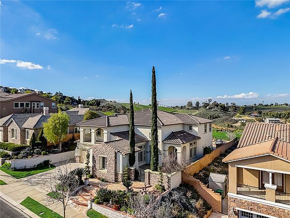 Immaculate executive home with stunning views of the snow capped mountains. Downstairs Master + 3 Master sized bedrooms, plus one guest bedroom for a total of 5 bedrooms and 4.5 bathrooms. Gated courtyard entry. Formal dining room, formal living room. Huge family room with soaring 20 foot high ceilings. Gourmet kitchen island with stainless steel appliances, including Sub Zero refrigerator. Lots of upgrades throughout the home, including: plantation shutters, custom ceilings fans, hardwood floors. Oversized backyard with lots of hardscape, a built in Gazebo surrounded by a rock fountain, a built in BBQ island, and fruit trees. Both side yards are concreted in and have room for lots of toys. 3 car garage with epoxy flooring. Located in the Retreat the Inland Empire's premiere 24-hour manned gated community.