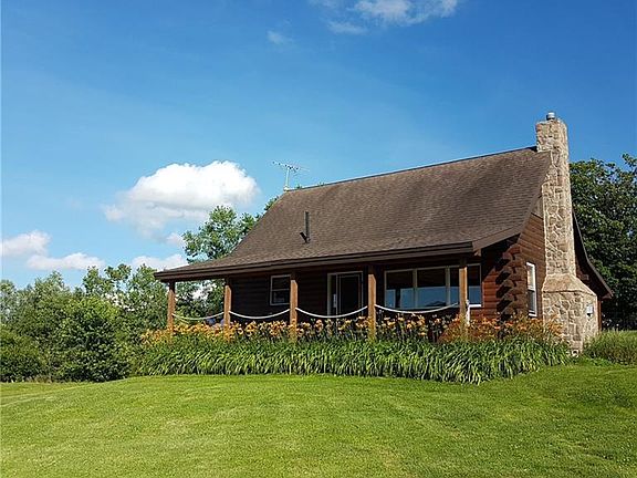 Hillside log cabin with panoramic views of the surrounding hills on approx 24 acres. Two+ bedrooms with two full baths, being offered furnished. Natural gas for heat with fieldstone gas fireplace in living area. Open concept with cathedral ceilings and loft bedroom with finished pine floors. Hard wood floors and tile throughout the remainder of home. Laundry area in lower level with two extra rooms currently being used as bedrooms. Large front and back covered decks with hot tub. Small pond in backyard. Entry area off lower level, with mudroom. Circular driveway for easy in and out access. 15 minutes to Ellicottville or 45 minutes to Buffalo. Make this your primary residence or enjoy it as a second home, just as the current owner has for the past 15 years! Have a look today!