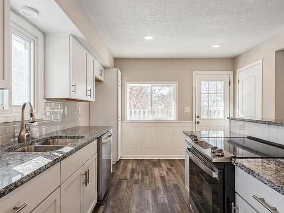 Beautiful and remodeled rambler with new roof, siding, patio, furnace, central air, flooring, paint, and remodeled kitchen and bathroom. Three bedrooms and full bathroom on the main level with a living room, dining area and kitchen. Open floor plan, huge/oversized garage, corner lot and fenced in backyard. Unfinished lower level ready to be finished to add more sq ft. This is a must see!