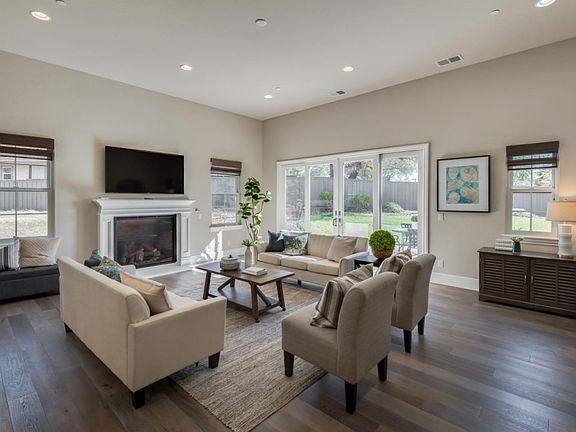 Finished in 2015, this Granite Bay home offers modern design in The Grove. Bright open kitchen w quartz countertops, built-in refrigerator, huge pantry, and formal dining room. Master Suite and Guest Suite/Office downstairs. 12 Foot ceilings. Gorgeous wide plank floors. 3 ensuite bedrooms & bonus room upstairs. Large lot with mature trees & space for pool. Cul de sac location in a premier neighborhood of newer homes. Outstanding Eureka Schools!