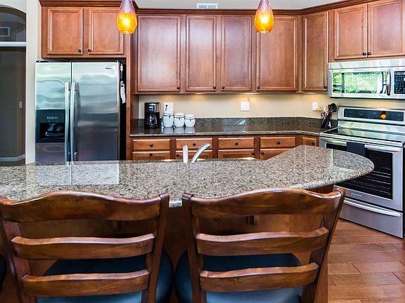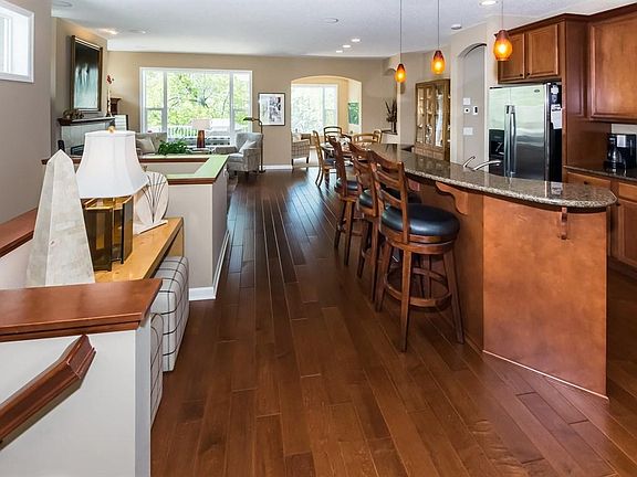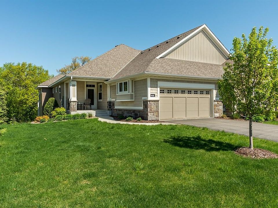 Stunning, spotless end unit walkout rambler townhome with great location overlooking wooded area. Custom built by Ron Clark. Open flowing floor plan with 4 season sun room, deck, awesome kitchen with granite & stainless appliances, main floor master suite with walk-in closet & private bath. Main floor den, laundry and 1/2 bath. Great room with gas fireplace & built-ins. Lower level: family room with gas fireplace, amusement area, 2 bedrooms, full bath and lots of storage.
