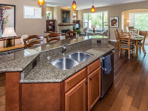 Stunning, spotless end unit walkout rambler townhome with great location overlooking wooded area. Custom built by Ron Clark. Open flowing floor plan with 4 season sun room, deck, awesome kitchen with granite & stainless appliances, main floor master suite with walk-in closet & private bath. Main floor den, laundry and 1/2 bath. Great room with gas fireplace & built-ins. Lower level: family room with gas fireplace, amusement area, 2 bedrooms, full bath and lots of storage., Directions Highway 13 to 132nd Street, West 1 block to home