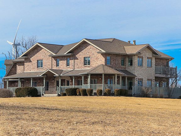 Breathtaking 40-Acre Country Estate includes a Gorgeous Custom Home, Horse Facilities, and a Fully Finished Outbuilding. Secluded retreat property with ~35 acres of trees that offers a multitude of recreational & outdoor activities. Beautiful details galore in the 9000+ square foot brick & stone home with 6 bedrooms, 4.5 baths, and finished lower level with walkout. High ceilings and open plan. Enjoy the views of nature & wildlife from the porch that spans across the entire front of the house into a built-in gazebo that wraps around to a deck along the entire back - or through the more than 60 Anderson windows & doors (all with custom shades) - or from the 2 upstairs balconies! Entryway has a unique chandelier and an Amish-built circle staircase leading up to a bridge/balcony that overlooks the family room, great room, and kitchen. Floor-to-ceiling stone fireplace (gas or woodburning) in the great room. Kitchen with Cambria counters, dining table with matching Cambria top, Amish-built hickory cabinets with soft close doors & slider drawers, durable hardwood flooring through to dining room and into a large walk-in pantry. Huge master bedroom with private balcony. Master bath has a Jacuzzi, custom shower, also a walk-in closet, 2 sink areas separated by a sitting area, cabinets, and heated toilet seat! All upstairs bedrooms have walk-in closets! Custom paintings by local artist in foyer, dining room, great room, and a bedroom! Lower level is finished with a complete 2nd kitchen area, a 2nd floor-to-ceiling stone fireplace (gas or woodburning), and a 2nd potential laundry area with extra storage, cabinets, counter, and sink. Lower level also has private finished walkout and private stairway exit to garage. Giant bonus room above garage with 4 large dormers - ideal for recreation room, workout facilities, or additional storage. Amish-built 6-panel oak doors & trim throughout. Attached insulated 4-car garage, each bay with an 8x10 overhead door. In-ground fiberglass 10,000-gallon pool with 250,000 btu natural gas heater, sand filter, & salt chlorine generator. Professionally landscaped around house, with brick pavers on pool deck, walkways, and in front of garage. An Entertainer's Delight for sure! Horse Lovers - this is your Dream Property! Horse Barn (40x64) with 6 horse stalls - each with a drain and 5 with exit doors. Horse Barn also includes a lounge, tack room, insulated main floor, and upstairs haymow with a chute and loading elevator. Riding Arena building (60x120) attaches to the horse barn through an indoor, enclosed insulated hallway/horse wash bay. PVC fencing for pasture is included but not installed. Small Business Owners, Hobbyists, or Do-It-Yourselfers: Fully finished huge Outbuilding (60x120) includes Shop/Storage building with cement floors and a 14' overhead door. Front half is an insulated 60x60 Shop with heat & A/C, built-in car/truck hoist, drain, loft for more storage, and an enclosed office area. Back half is 60x60 cold storage (also with a loft) that separates from the shop area with both an entry door and a 14' internal overhead door. The complex has 400-amp service and a commercial-size propane generator so that the house, shop, horse barn, and arena are always running. Geothermal heating & cooling - 2 separate units with 6 zones total. Commercial-grade 3 hp constant pressure well pump. Variable pressure water volume, capable of 28 gpm that services entire complex (house/horse barn/shop/2 outside water hydrants). 2x6 frame construction. ADT security system on all doors & windows and motion sensors throughout. Close to Moraine View State Park, less than 30 minutes from Blm/Normal, and 34 minutes to Rivian. LeRoy school district. Income opportunities include boarding horses, potential for converting ~15 acres to farmland, renting the shop, or renting storage for vehicles/boats/equipment in cold storage shed. Please call the listing broker with any questions regarding showings.
