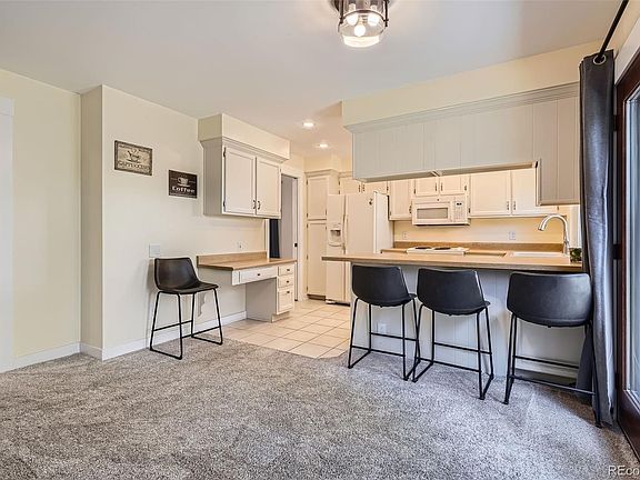 - Description: Tile Flooring, All White Appliances, Breakfast Bar, Eating Space, Built-In Work Station, Recessed Lighting