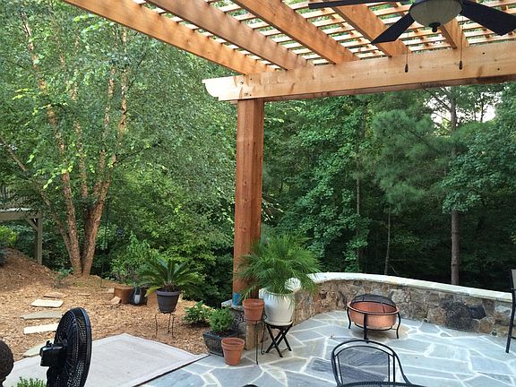 Home has great stone patio W/Pergola fan/light, Built in Green Egg & Gas Grill. Backyard has wooded privacy and babbeling brook, Masterbedroom on Main & Upstairs, Loft area and walk-in storage room. Landlord pays HOA fees- Includes pool, lawn mowing, and garbage removal