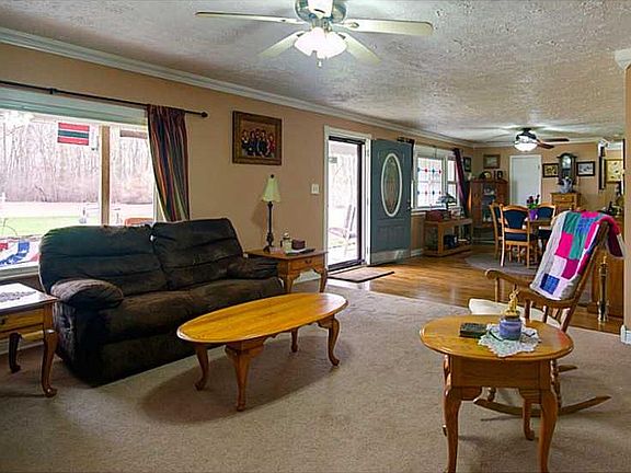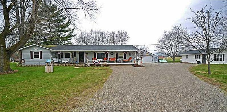 If a peaceful country setting with acreage, storage, workshop & extra garage space with added plus of a separate "man-cave" is what you're looking for, then this is the place for you! Nice ranch w/hardwood floors, country kitchen, newer windows, roof. Watch the sunrise from your covered porch, and sunsets from your deck overlooking farm fields. A covered shelter in the back yard for picnics & family gatherings.