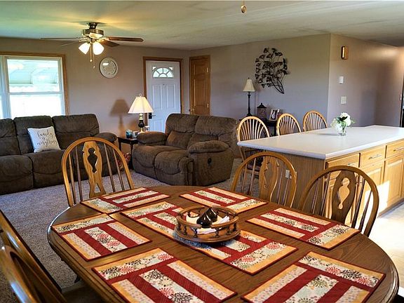 Charming and totally remodeled home in a beautiful country setting. Open concept, one floor living, 2 to 3 bedrooms, 2 baths, is pretty as can be and move in ready. Within the last 2 years: metal roof, new windows, new oak kitchen, solid oak doors and trim, stainless appliances, plumbing, electric, drywall. Ventless gas fireplace. 30x40 detached garage with lean-to. Three apple trees and grape arbor. All situated on 1.88 acres with fabulous country views.