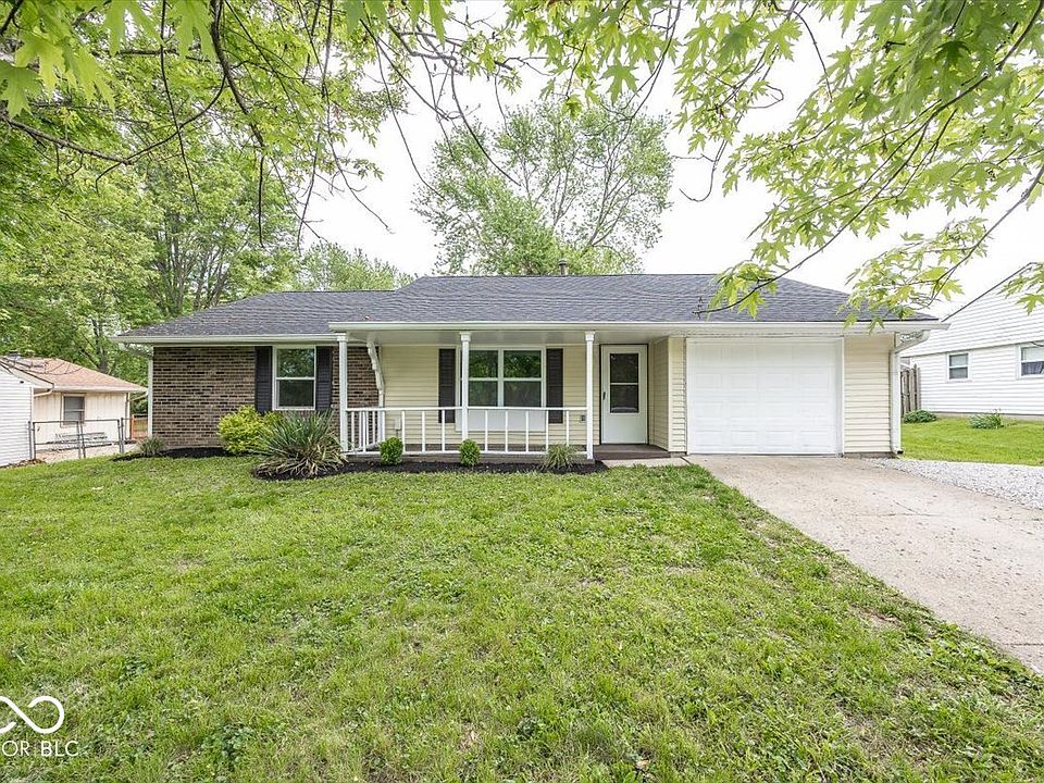 Beautifully updated 3 bedroom ranch home located in Perry Township schools close to Perry Meridian Middle School and High School. Updates include an all new kitchen featuring new cabinetry, new countertops and all new stainless steel appliances. The bathroom features new ceramic tile tub surround, new vanity and all new fixtures. Additional updates include a new single layer dimensional shingle roof, all new flooring including luxury vinyl plank in the living room, family room, kitchen, bathroom and hallway and new carpet in all 3 bedrooms. The interior has been freshly painted and offers new light fixtures and ceiling fans. Home features separate living room and family room, fenced back yard and a large covered front porch.