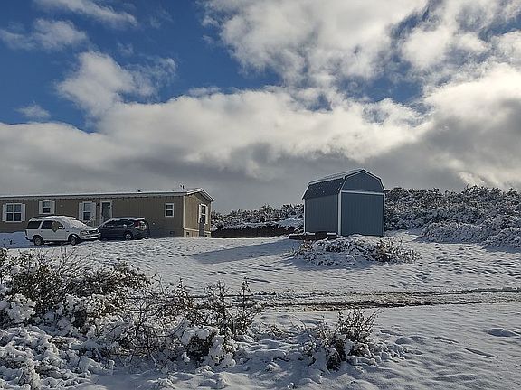 Single wide manufactured home on 2.11 acres. Has 10' x 12' storage shed, a partially built gazebo and an owner owned solar system. Home delivered on location in February of 2022. Anniversary model. Only 3 neighbors - front of property is State land.
