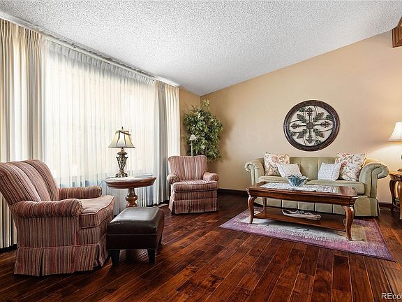 Welcome to this stunning 5 bedroom, 3 bathroom tri-level style home located in the highly desirable Highlands 460 neighborhood of Centennial. This home boasts beautiful wood floors, exotic granite countertops, and a stunning primary suite. With an oversized back yard, a quiet covered patio, and a 2-car garage, this home offers everything you could want and more. As you walk in, you're greeted by a spacious formal living room with large windows and vaulted ceilings. Wood floors add a touch of warmth and elegance to the space. The living room flows into the dining room, perfect for entertaining guests or enjoying meals around the holidays. The kitchen is a chef's dream, featuring granite countertops, updated cabinets and plenty of storage space. The island provides ample workspace and the breakfast nook is perfect for casual dining. Just down a few steps is a cozy great room which has a wood burning fireplace, gorgeous brick hearth and offers a place for daily casual entertainment. Just off the great room is a convenient powder bath and laundry room. The primary suite is a true oasis, featuring a spacious bedroom and a stunning en-suite bathroom. The bathroom has a custom shower, dual vanities and a private powder, making it the perfect space to unwind after a long day. There are 3 additional large bedrooms upstairs with plenty of closet space. A well equipped hall bath that has a door between the dual sinks and shower room. Find a bonus den and a small bedroom in the finished basement perfect as an office, guest room, or workout space. Explore the enormous backyard which provides plenty of space for countless outdoor activities or entertaining, and a covered patio is the perfect place to enjoy a morning cup of coffee (or an evening glass of wine!) The Highlands 460 community is highly sought after for its quiet streets, parks and close proximity to shopping, dining, and entertainment.