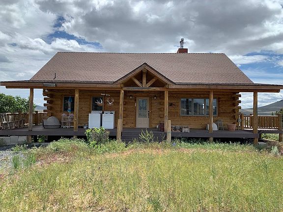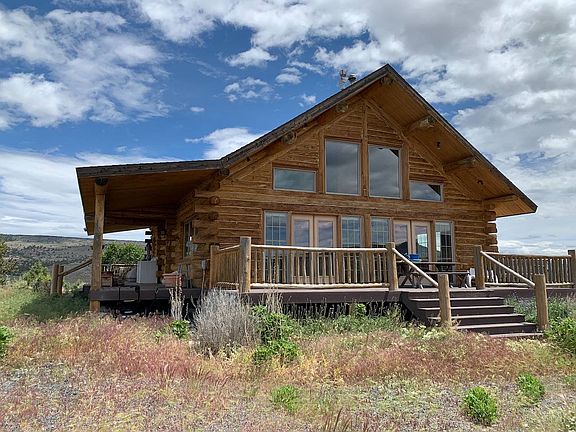 Location Location Location. This incredible cabin located in Drewsey Oregon is the place you need to be. If you are looking for privacy, seclusion and an incredible view this is it. This log home was built in 2005, it is in great condition. The home was built by the Amish and tamarack logs were used to build it. It is approximately 3600 sq. ft. The home features 3 possibly 4 bedrooms and 2 bathrooms. It is a two story home with vaulted ceilings and a daylight basement. There is a great quality to detail and craftsmanship in the building of this home. Nice large open kitchen with hardwood cabinets, wood counter tops, stainless steel appliances and custom lighting throughout. You really need to see this place to appreciate it. Large open living area with large windows and a fireplace located in the center of the room. There is a large full bathroom on the main level, large closet space and good sized laundry/mud room. There is also a small freezer/storage room off the back door area. The upstairs loft is the master bedroom area with vaulted ceilings and great views. There is a full bath with claw foot tub and tile shower. Also a large walk in closet, very nice space. Moving down to the daylight basement the floor is concrete. There is a large open living/bedroom area with lots of open windows and two sliding doors on either side of the room. A wood stove is also located in that area. Directly behind this room is a large bedroom/living area or family room. Next to that is an additional bedroom with the furnace located there as well. Step outside of the multiple sliding doors out onto a beautiful stamped concrete back patio with nice wide open views. There is a large covered front porch area with composite Trex decking which is very nice as well as an open porch off the West side of the home with nice open area for seating. There is also a nice upper balcony area off the master bedroom. The property is just over 150 acres and the home sits on the South end overlooking the valley and river. Mostly sagebrush and some juniper trees. The owner has a nice garden area and has planted some nice trees as well. There is a well and pump house as well as an additional storage area and kennel.