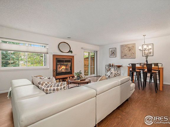 Niwot townhome in Johnson Farm backs to open space in Niwot. Mature landscaping and trails right out your front door and is conveniently situated a short walk to the Niwot Market, breweries, shops, restaurants and parks in downtown Niwot. The main level welcomes you with natural light and an open floor plan, the kitchen flows into the dining space and living room that has a wood burning fireplace. Upstairs, discover the primary retreat with vaulted ceilings and loads of light with a deck overlooking green space, and an ensuite bath. The second bedroom is spacious with a raised loft area perfect for another bed setup, office, or play area, it also has a solar skylight that will open and adjust with the weather and the sweetest window seat. Additionally, there is another 3/4 bath with a new refinished shower on the second floor. The lower level offers additional living space, storage areas, a third non-conforming bedroom or family room, a brand-new bathroom, and a laundry room. Enjoy the enclosed stamped concrete patio for morning coffee or relaxing evenings. Recently painted trim and brand new carpet make this home ready for you to move in and enjoy! AC(2021), Roof (2024), Solar Skylight( 2023), Basement finish( 2022), Water heater (2022), Stamped Patio ( 2022). First American Eagle Plan Home Warranty offered to buyer.