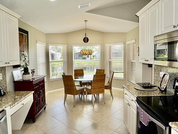 PRISTINE AND GORGEOUS HOUSE! Water views are serene and peaceful! Rarely available, this updated home has a brand new A/C this year, newer stainless appliances,granite kitchen & backsplash, with white cabinetry, updated bathrooms, no carpeting, an extended patio outside the screened lanai & complete accordion shutters. Valencia Shores is an award winning premier active 55+with stand alone restaurant, state of art Athletic Center, indoor racquetball, salon with mani, pedi, hair, 10 tennis courts,6 pickleball courts & 3 bocce courts. Full time tennis pro & social director, shows clubs & more! Social pool,Resistance pool, lap pool, whirlpools indoor & outdoor, sauna, steam,& so much more! Walk to clubhouse from this updated home! Affordable,move in ready, perfect! Live the VALENCIA LIFE!LOVE!