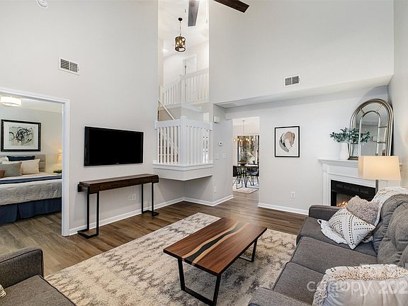 You’ve toured everything on the market & they’re all slight variations of the same until now! This beautiful end unit has 2-story ceilings, a dramatic staircase, & lots of natural light. Updates just completed incl removal of popcorn ceiling texture in favor of smooth bright white. Interior door hardware & light fixtures updated to modern nickel; no more dingy, dated brass! New durable LVP wood floors in a light wood tone & freshly painted walls in an airy off-white neutral. Large kitchen design with lots of counterspace & new SS appliances. Main lvl primary suite is spacious with 2 closets & built-in organizers. New upstairs carpeting & framed bathroom mirrors complete the list of updates. Don’t spend months saving, looking for contractors, & living thru dusty renovations; instead, move right in! Rear patio looks out to natural space & no attached neighbors to the right. Holly Ridge is a memorable community with holiday themed street names, outdoor pool, small pond, & walking paths.