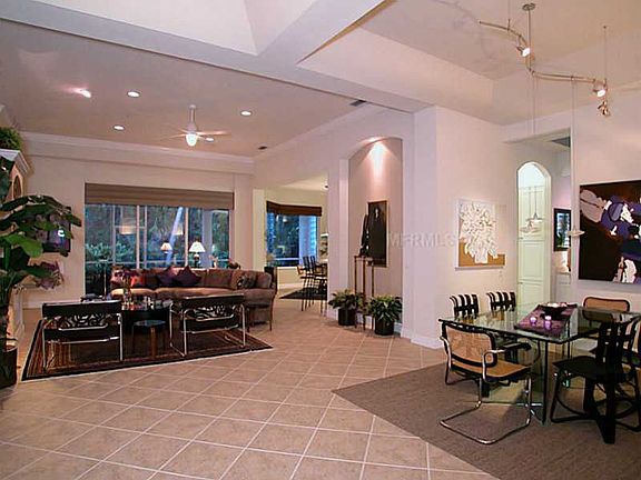 An Ashdown III model in Kenwood Park, at University Park. Located on a quiet street you will find a simple, elegant and modern home which has been lovingly maintained and professionally designed and decorated by the owner. Extras include bay window with seat in the breakfast room, a murphy bed in the office/den. Throughout the house you will also see designer window treatments, exquisite lighting and paints. The master bathroom has a tile bench and grab bars for safety. Mirrored and glass block walls add interest to the bathroom. The staggered layout of the kitchen cabinets, the crown molding, the diagonal ceramic tile layout, the termite protection system, the instant hot water and the scoring design in the lanai floor add value to this home. The 2nd den could easily be converted into a 3rd bedroom. The garage has a window and extra storage. This house has all the bells and whistles that one can ask for, yet tastefully done. Minimum membership requiremen: Social family is $536/yr with a $900 minimum food & beverage. Single membership is $286/yr with a minium of $450 food & beverage.Some furniture might be available for purchase. Call today for a showing.