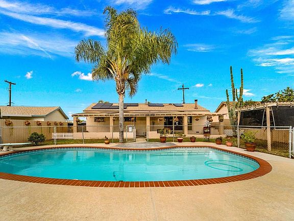 Welcome to your oasis! This stunning 3 bed, 2 bath home boasts a recently redone roof and a newly installed AC, ensuring comfort and peace of mind. Immerse yourself in the refreshing private pool and expansive yard, perfect for entertaining. With a resurfaced pool, mature trees, and over 10,000 sqft lot, the potential for a beautiful outdoor deck or your dream ADU is limitless. Relish the incredible sunset view from the yard. Step into this haven and be greeted by an enormous sliding patio door, ushering in refreshing natural light throughout the home. It’s close to shopping and freeway access, offering convenience and connectivity, and with no neighbor behind you, enjoy added privacy. Priced to sell, this blank canvas eagerly awaits its new owners. Complete with a generous 2-car garage and ample parking, this versatile property is ideal for a multigenerational household. Seize the opportunity to make this your dream home in a thriving neighborhood! This home has a brand new solar system being installed to offset your monthly energy costs.