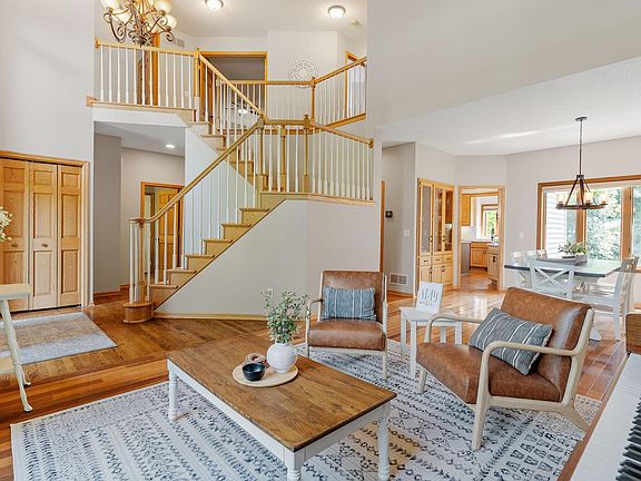 Come see this stunning two-story home located in a charming Maple Grove neighborhood with award winning Rush Creek schools and a short walk to Weaver Lake Park. This home offers 5 bedrooms with walk-in closets, hardwood floors, vaulted ceilings, fresh paint and a nicely flowing layout. The upper level offers 4 bedrooms including a large primary suite with an elegantly updated spa-like bathroom. The main level boasts a vaulted entry, large windows, a sun filled foyer, and natural light throughout. The kitchen is updated with stone counters, a fresh backsplash, stainless steel appliances & open concept. Enjoy entertaining guests on the large deck and private yard. Fitting a truck is no problem in the oversized 3 car garage. The lower level has a cozy gas fireplace, custom built-in cabinetry, and walks out to a beautiful yard with mature trees. Do not miss this amazing home located in a highly desired area!