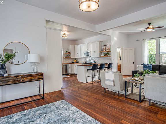 Updated, historic Old Portland charmer! New roof, gutters, electrical, plumbing, carpet, interior/exterior paint. Dream kitchen - fully renovated with custom cabinetry, stainless steel appliances, and eat-in peninsula - flows into living & dining spaces w/high ceilings. Private office is perfect for work from home. Low-maintenance landscaping (new sod) w/fenced backyard & gravel fire pit. Great location <1 mile to the Univ. of Portland, New Seasons, restaurants, cafes.