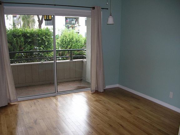 Enjoy living in a quiet community close to local restaurants, coffee houses and the beach. Located in a small 13 unit complex has controlled access building, one assigned parking space in community garage. Bright spacious front unit has balcony off dining area, large living room with foyer, wood floors, extra closets and all appliances are included. LAX soundproofed windows and slider includes venting system.