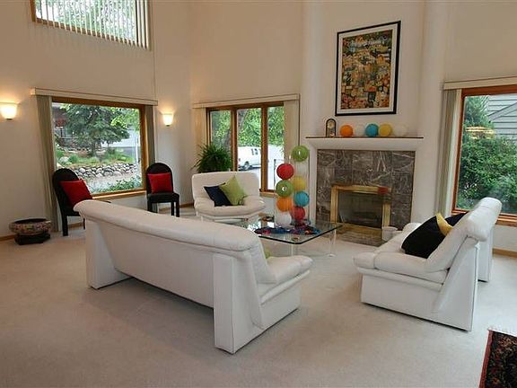 Welcome to this outstanding five bedroom four bath home located on a beautifully wooded lot in a quiet family filled neighborhood. Only blocks to parks, schools, community center and walking paths. This Grand Custom Built home features a stunning open floor plan and great attention to quality and detail. The main level offers a Striking two story Living Room and sliding doors to a deck. This room is centered on a wood burning fireplace and unique windows and sunny exposure. The Kitchen is gorgeous with loads of cabinetry, new granite counters, stainless appliances and ceramic flooring. The kitchen and informal dining are have a gorgeous tree top view of the back yard. The adjacent 4 season porch also has views of the private rear yard and is a great place to entertain. Adjacent to the Kitchen is the main floor laundry. The upper level offers three large bedrooms. The third loft bedroom can easily be enclosed. The master bedroom is secluded and features a deck overlooking the