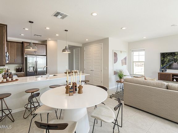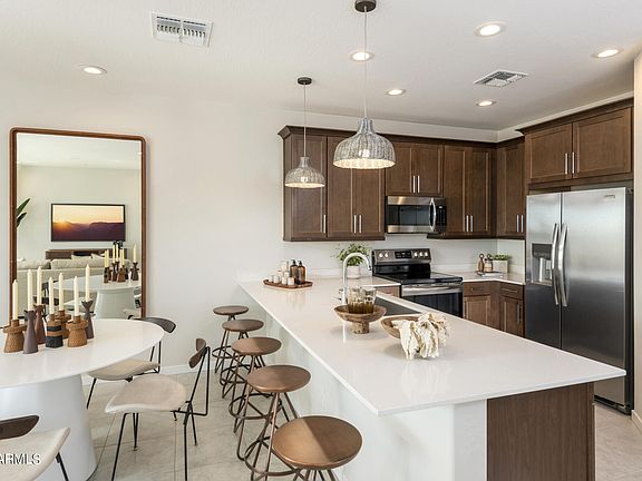 Limited time offer: We are offering a 2/1 Buydown with Special financing rates and up to $10,000 in closing costs with preferred lender. A collection of brand-new single-family homes located in the master-planned community in Mesa, AZ. The community feeds into the highly rated Gilbert Public School District, making this an ideal place for growing households. There are many onsite amenities at the masterplan everyone will enjoy, including a swimming pool, basketball court, pickleball court, playground and picnic area. Commuters have easy access to Loop 202 and Phoenix-Mesa Gateway Airport for travel accommodations. This beautiful Townhome features our platinum option including Sonoma Maple Slate cabinets and quartz countertops. Luxury 8 x 36 plank tile flooring.