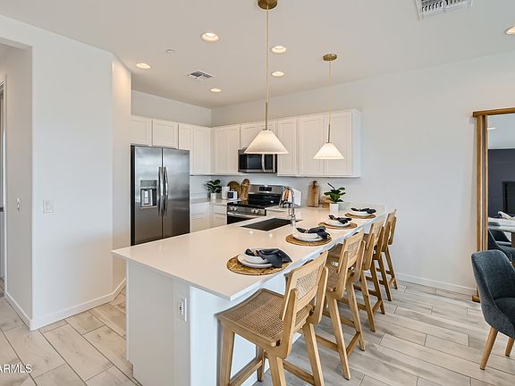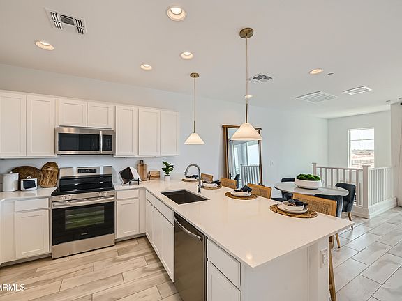 Brand-new single-family home located in the master-planned community in Mesa, AZ. The community feeds into the highly rated Gilbert Public School District, making this an ideal place for growing households. There are many onsite amenities at the masterplan everyone will enjoy, including a swimming pool, basketball court, pickleball court, playground and picnic area. Commuters have easy access to Loop 202 and Phoenix-Mesa Gateway Airport for travel accommodations. This beautiful Townhome features our platinum option including Sonoma Maple Slate cabinets and quartz countertops. Super luxury 8 x 36 plank tile flooring. Photos are of a model home. A public report is available on the Arizona Department of Real Estate website.