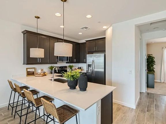 Seller will provide a credit towards a rate buydown and closing costs with preferred lender. Ask us how to save thousands over the life of your loan. Hawes Crossing is a new community in Mesa, AZ with proximity to great local shopping, dining, and entertainment. Residents of this vibrant community enjoy onsite amenities such as a swimming pool, barbecue and picnic areas, basketball court, pickleball courts, playgrounds, and more—perfect for all ages to enjoy. This home comes fully equipped with all brand-new stainless steel kitchen appliances and is complete with 8x36 tile flooring, beautiful quartz countertops, and modern maple linen cabinetry, thoughtfully crafted for comfort and function. Photos are of a model home. A copy of the public report is available on the ADREs website.