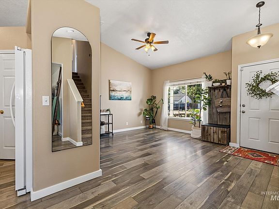Get out of the heat and into a pool with this great home!! Community pool and RV Parking at an amazing price! This wonderful home is located in a convenient NE Nampa location and on a culdesac street. New LVP flooring and baseboards throughout the main living areas. The vaulted ceilings and bright windows give the home a welcoming and spacious feel. The kitchen features a breakfast bar, pantry, garbage disposal and upgraded faucet. There is a convenient 1/2 bath located on the main level. Upstairs you'll find the master suite with private bathroom and walk-in closet, along with two guest bedrooms and a second full bathroom. Enjoy evenings under the covered patio overlooking the large, fully-fenced backyard. Plenty of room to plant a garden! The two sheds are included if desired. Don't miss this wonderful home!!
