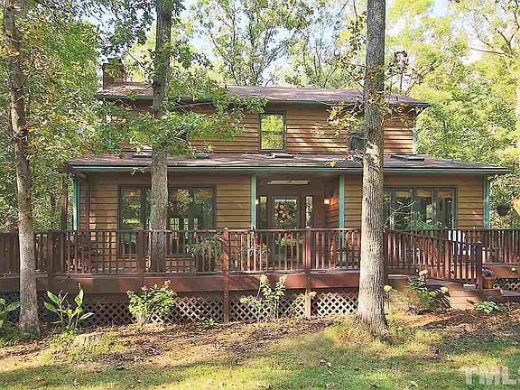 Private Retreat on 2+ acres minutes from Chapel Hill & RTP. Large front & back porchs overlooking your estate! Entry Foyer. Amazing Office with wrap around desk and bookshelves to the ceiling! Family with Lrg Masonry FP. Formal Dining & Living or Sunroom. Hardwoods thru-out except in Kit. Kitchen w/breakfast nook! Utility Closet. Circular Drive. Master w/WIC. Very pleasant setting!